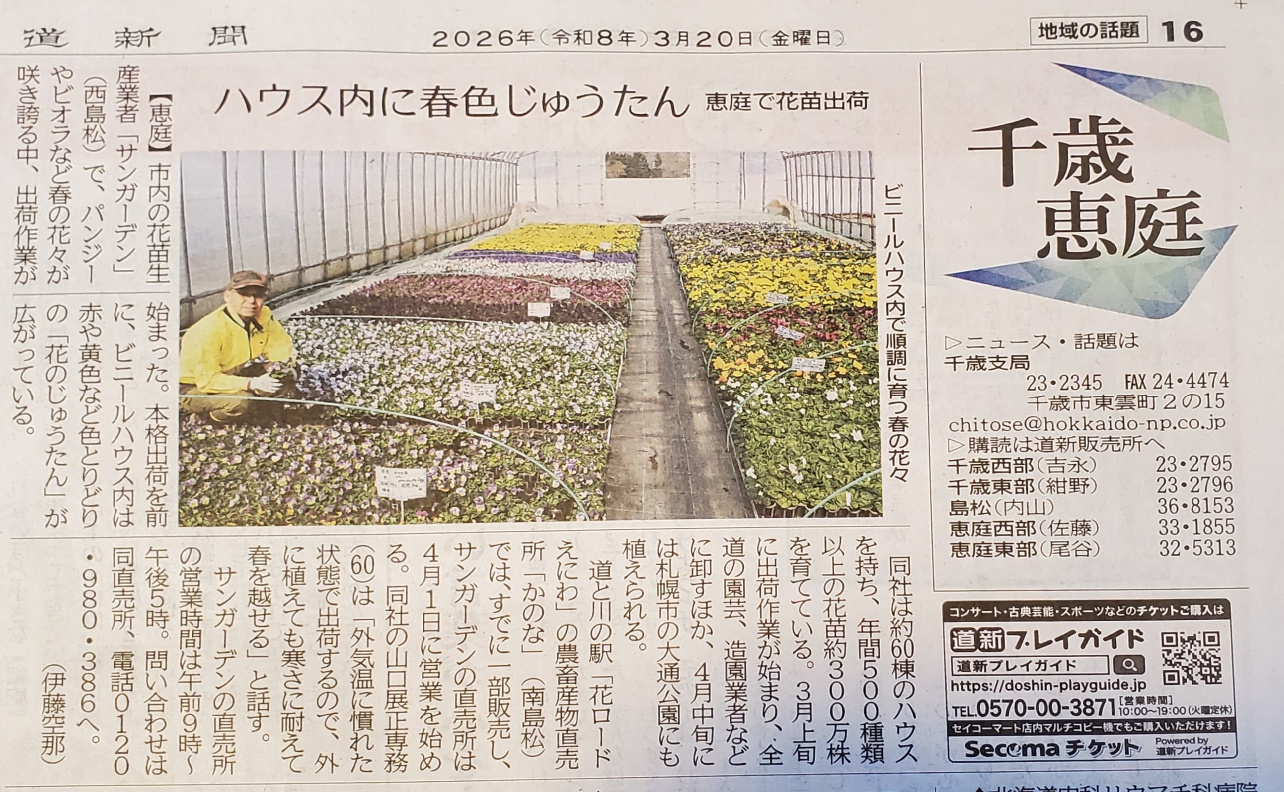 北海道新聞さんに掲載されました